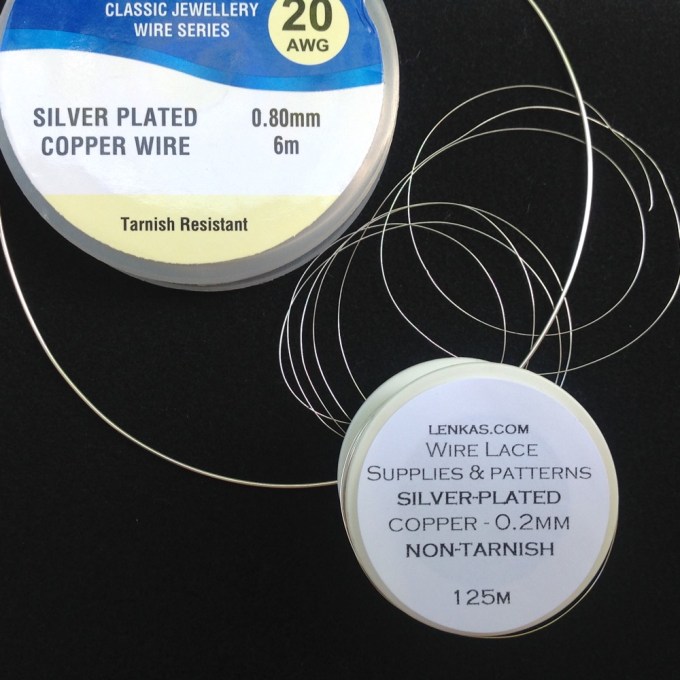 Once you visit the my online store, you will notice that I also added thicker wires to the regular stock: 0.8mm (gauge 20) in both, silver plated and gold plated versions, just to provide matching wires for jewellery finishing. These wires can be used to outline the lace patterns, and also to make pendant loops, ear hooks etc.