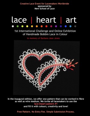 Since launching our new project on May 14th, we have received a huge response from the international lace community, and the first entries already arrived! The free Heart pattern for fibre and wire lace has been printed, and the challenge promoted, in the Spanish magazine Vuelta y Cruz (Twist and Cross), in the Australian Lace Magazine, and in the current issue of the Canadian Lace Gazette!