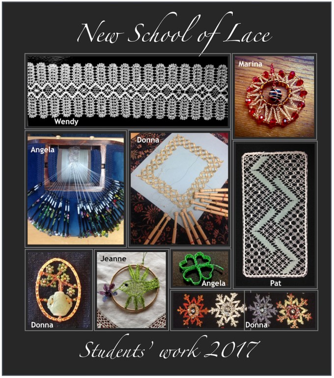 Join the growing group of lacemakers in Ocean Park in British Columbia (Canada) and see what you can create! Here is a collage of 2017 students’ projects for your inspiration: