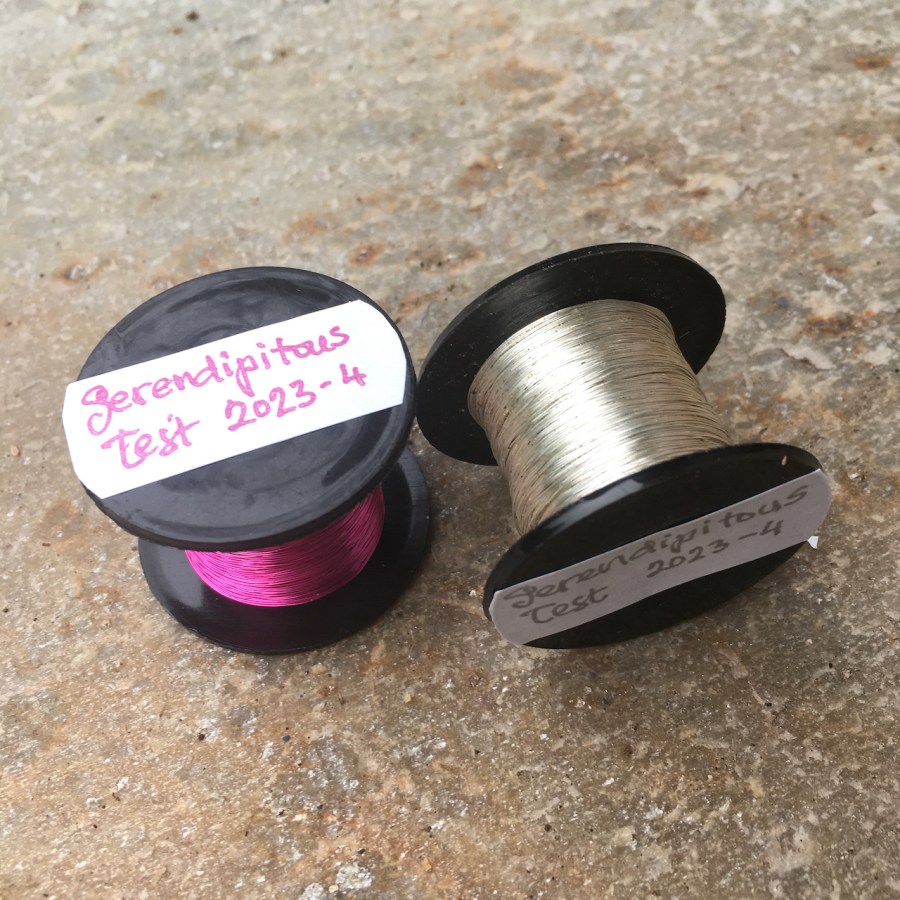 Both lost and found spools are now back in my studio. I will not sell them, of course, they stay in my wire box for future observation. They join other spools in my collection of miss-shaped, mislabeled and miss-wound spools. Eventually the wire will complete its uncommon journey and become a piece of unique lace.