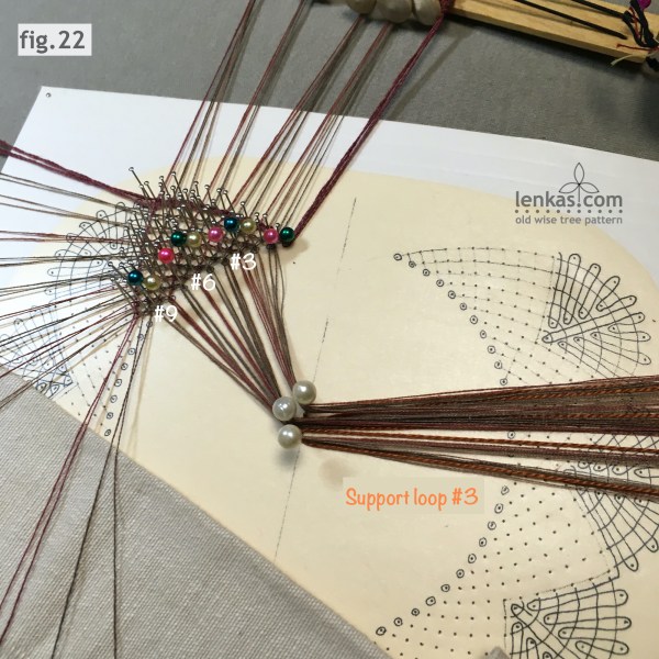 Support loop #1 is re-pinned in the centre – it will collect threads of footside pair #10, 11 and 12.