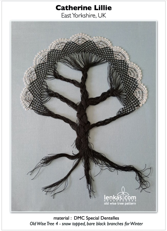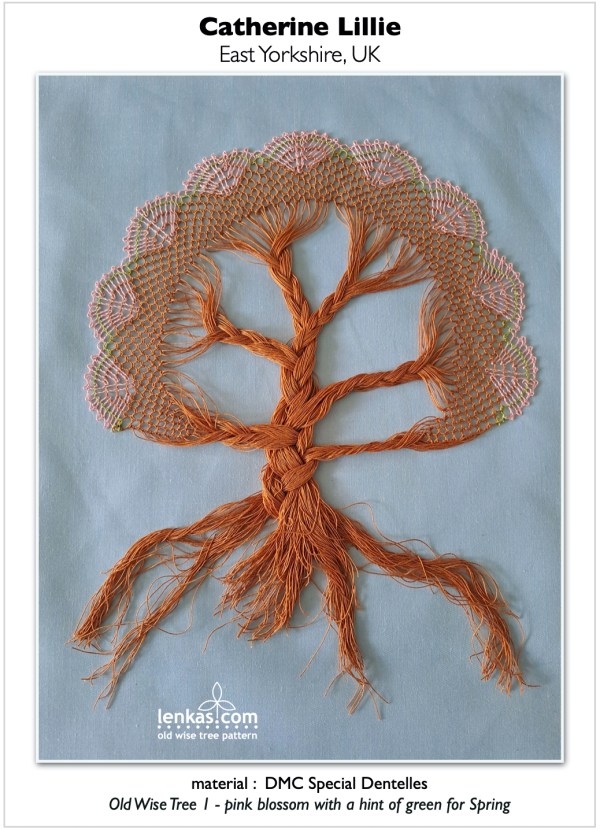 It’s always a special day when an Old Wise Tree photo reaches my email inbox. When five of them come together, it’s a celebration! I love to see interpretation of the pattern and never fail to be impressed with lacemakers’ imagination, creativity and skills.