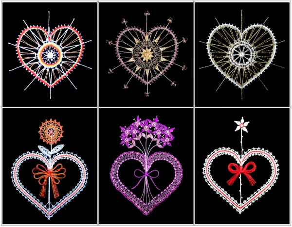 For inspiration on how to work the lace hearts, visit the online exhibitions of hearts from all over the world: