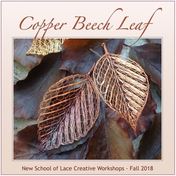 Copper Beech Leaf Pendant workshopThe same pattern was used for research of wire/fibre combinations in lace, which lead to yet another possibility in wearable lace art. The new Copper Beech Collection is now available for sale at the Silk Weaving Studio on Granville Island, in Vancouver, BC.